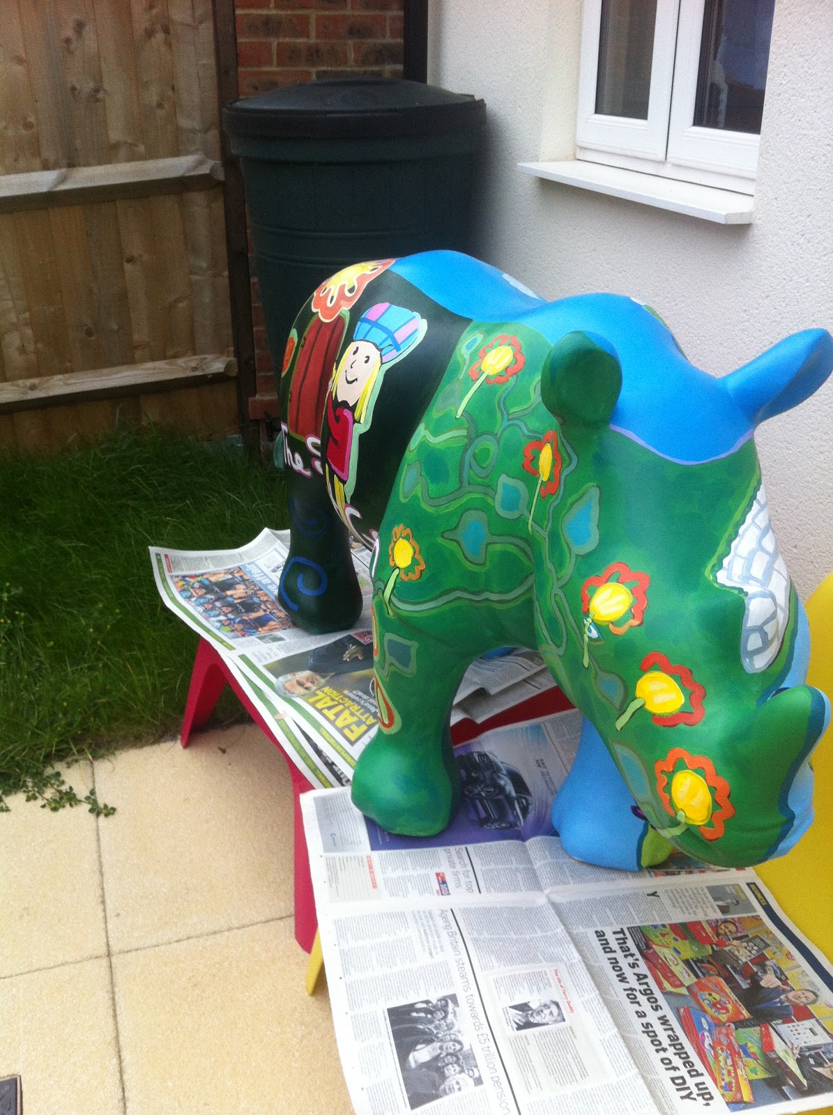 Final finishing touches and varnish. Tomorrow, one very colourful rhino will be delivered to Southampton Central Library / Southampton City Art Gallery.
